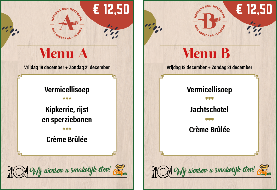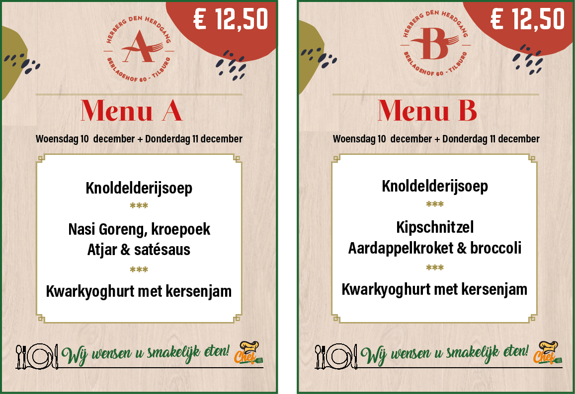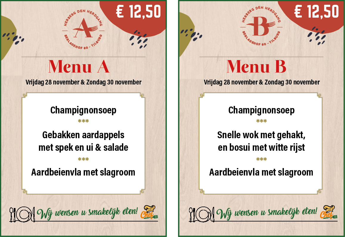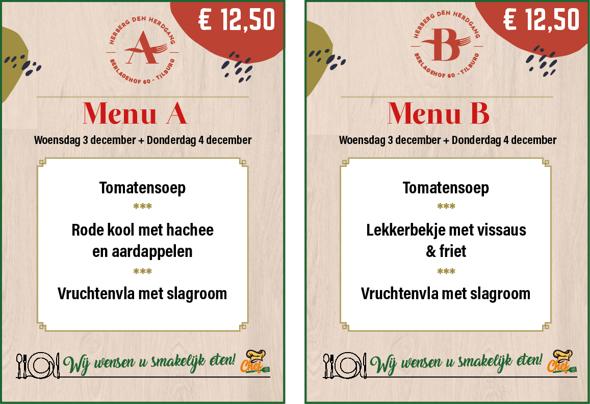 Wij bieden u elke twee dagen een keuze uit twee dagmenu's.